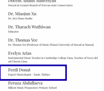 WOMCO platformunda müzik eğitmeni ve müzikolog kimliğimle yer almaktayım. Dünyagenelinde uluslararası müzik yarışmalarını bir araya getiren bu platformda seçkineğitmenler listesinde bulunmam; mentorluk çalışmalarımın ve öğrencilerimin elde ettiğiderecelerin küresel ölçekte görünürlük kazanmasına katkı sağlamıştır.